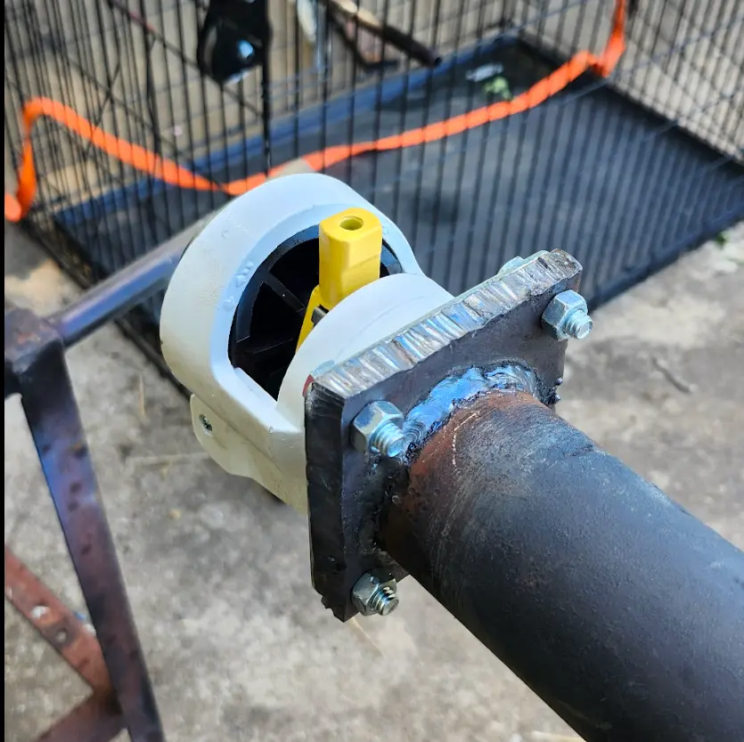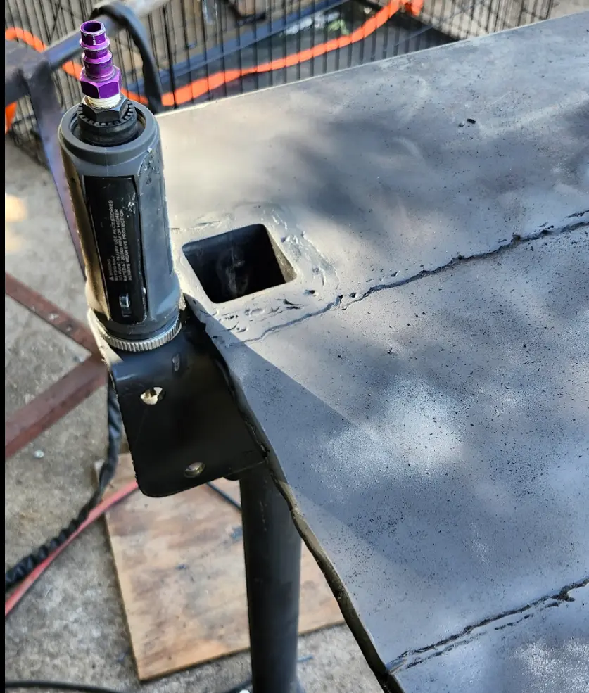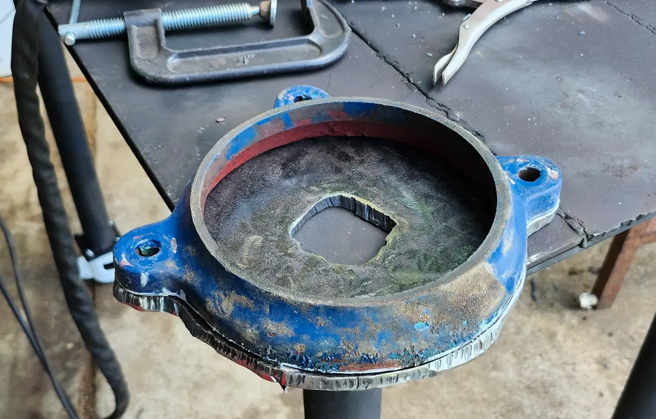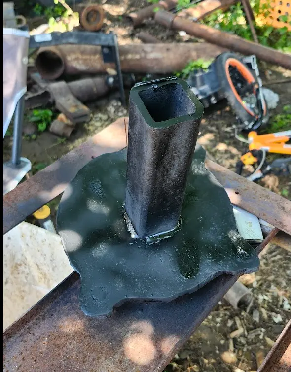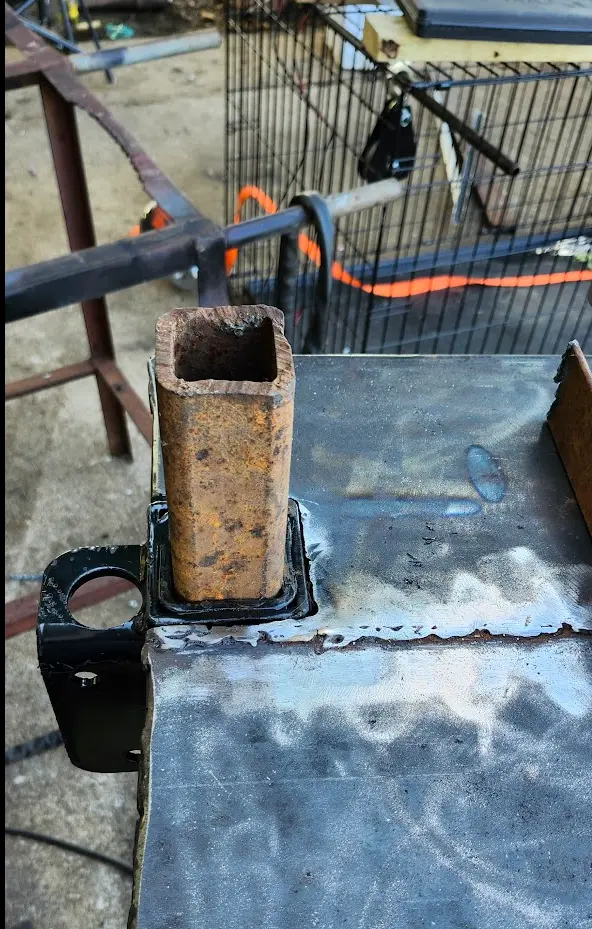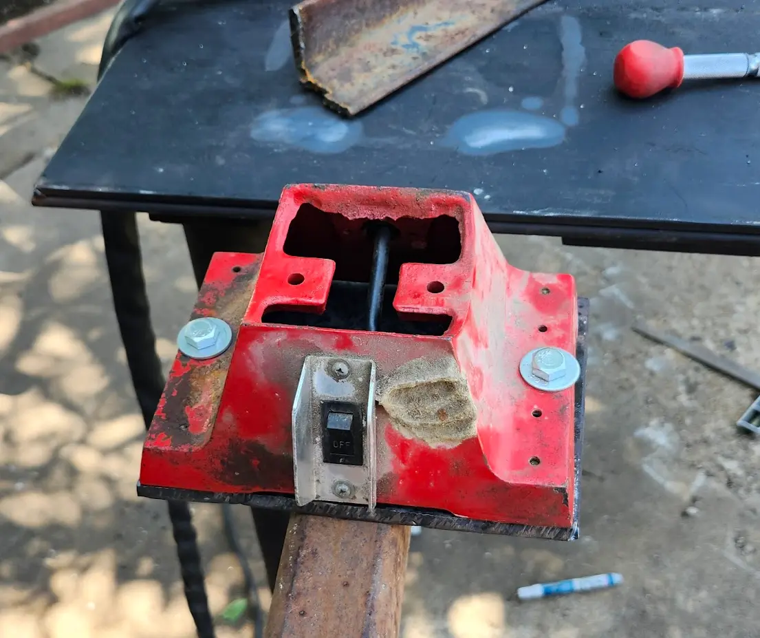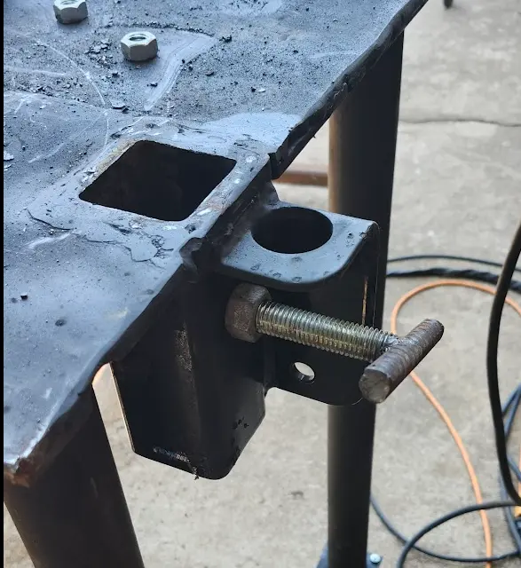Not pictured- The table was turned upside down, and the mount was welded into place.