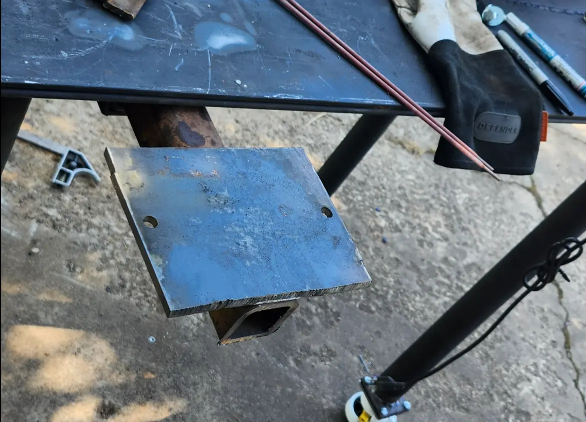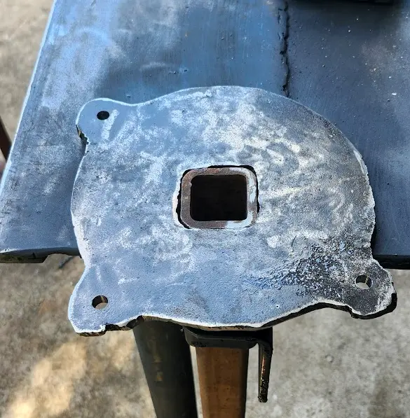 With the plate drilled, I test-fitted a piece of square tubing, and slide it into the table mount.