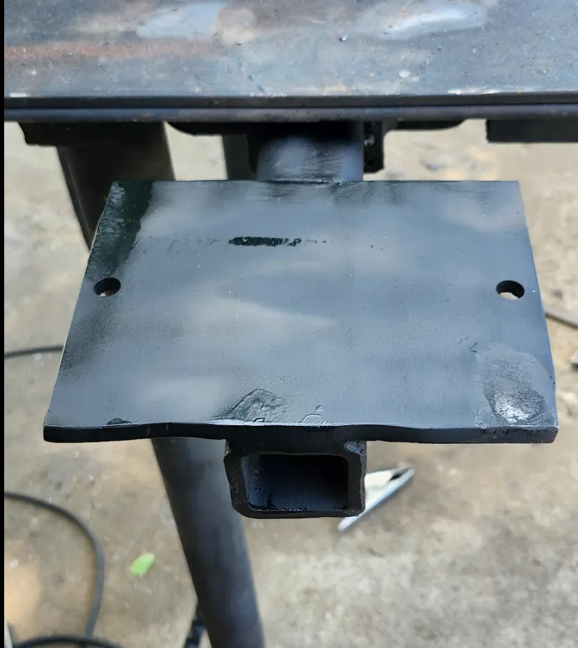 (Also- not pictured- A hole was drilled through the square tubing, allowing a bolt to hold the square tube to the receiver hitch.)