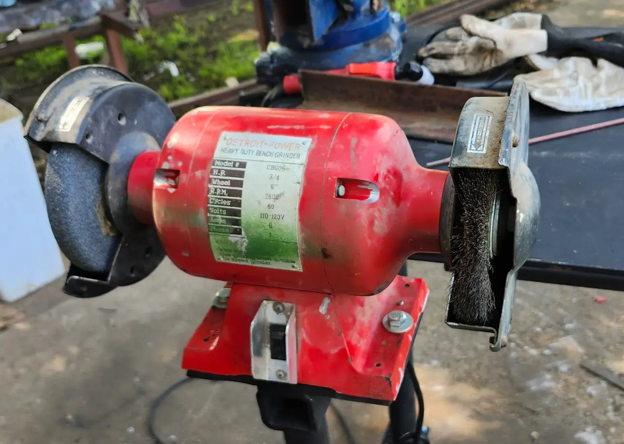 In the first case- A simple bench grinder. In the current state, my bench grinder sits on the floor, and is secured to my table using wood clamps. This is not ideal, and I wanted a proper solution for this problem.