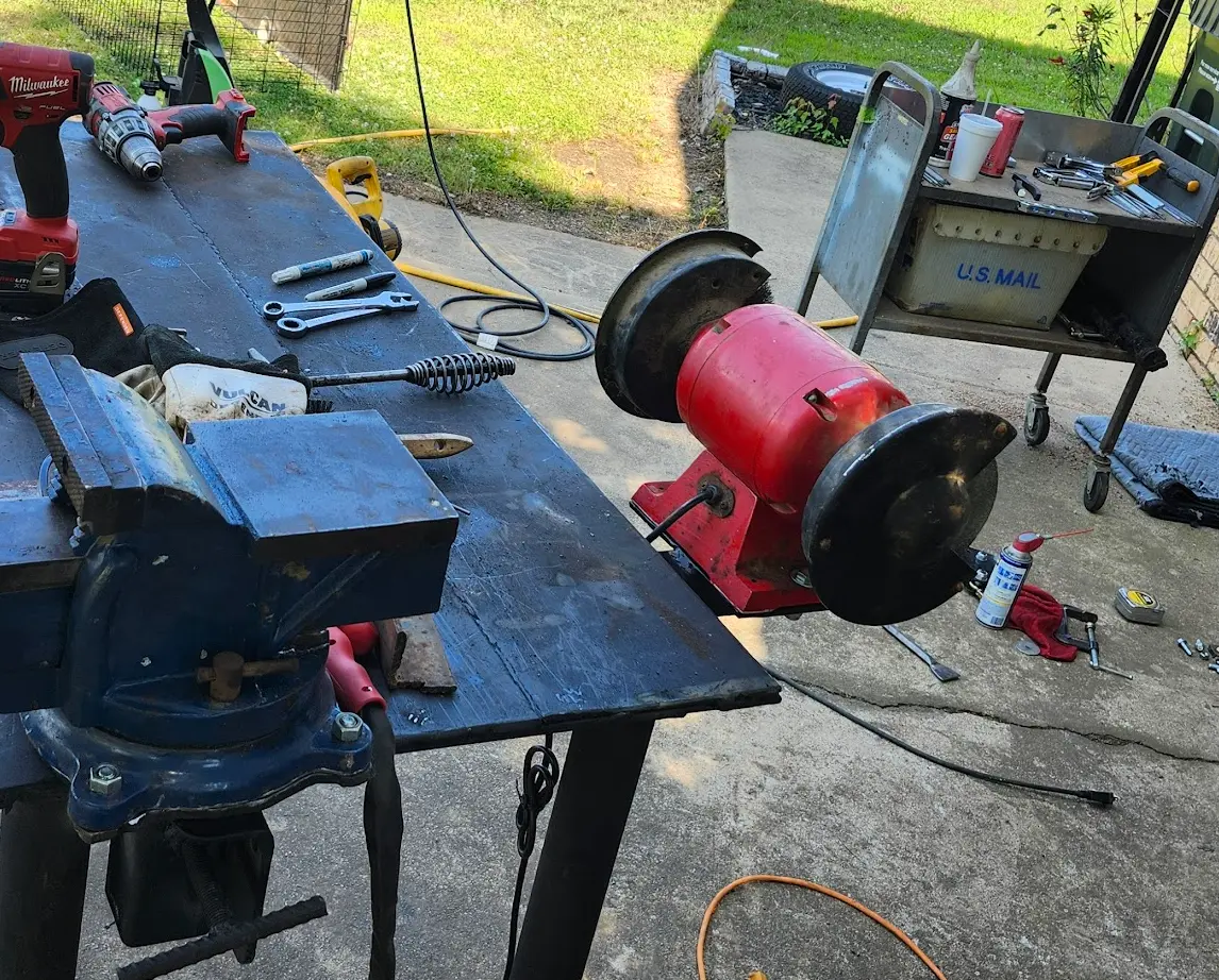 I ALSO went ahead and added a mounting system for my Vise, Anvil, and Bench Grinder. To do this, I used a simple bumper hitch receiver from Harbor Freight..