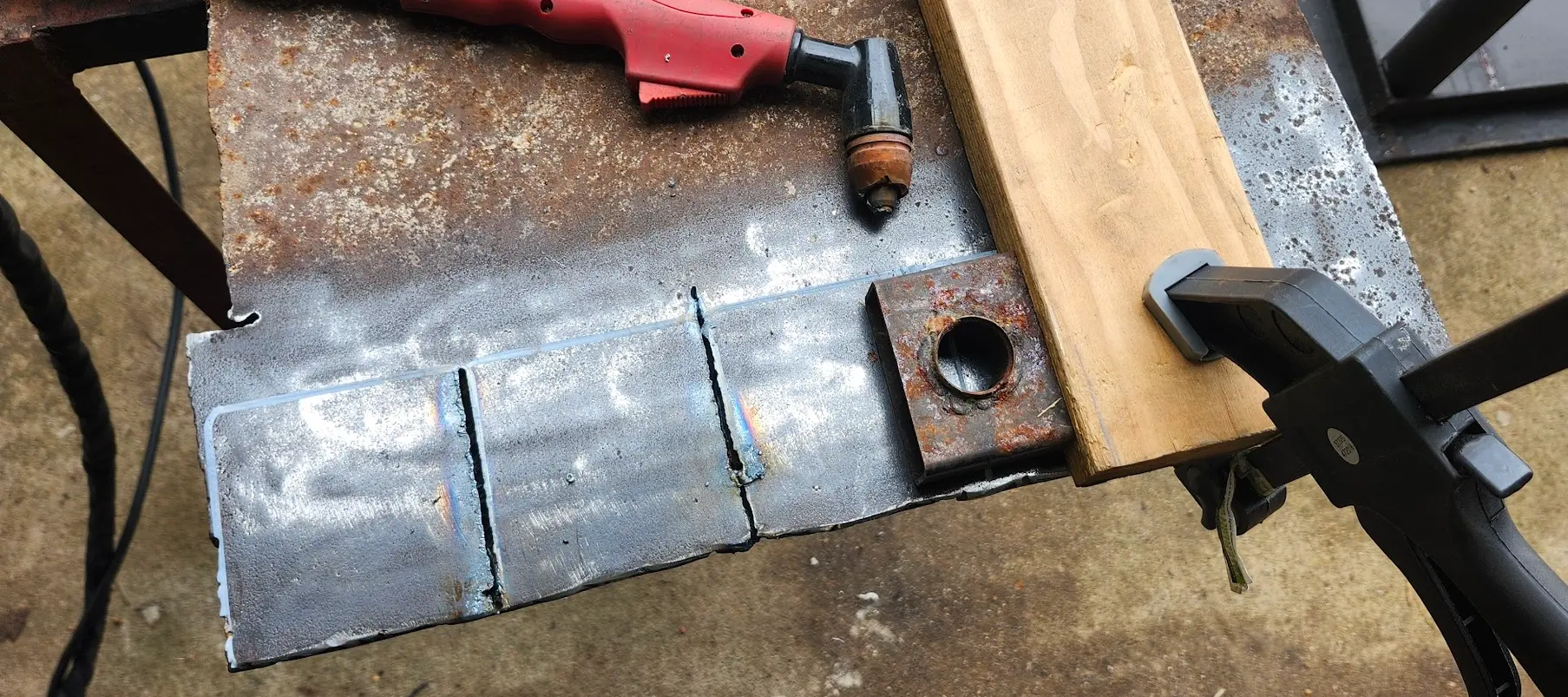Next, I used my plasma cutter to cut the plate.
