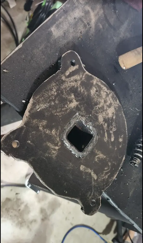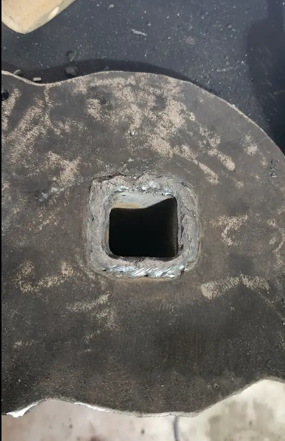 Next up, I ran a weld around the inside of the plate to join the base to the square tubing
