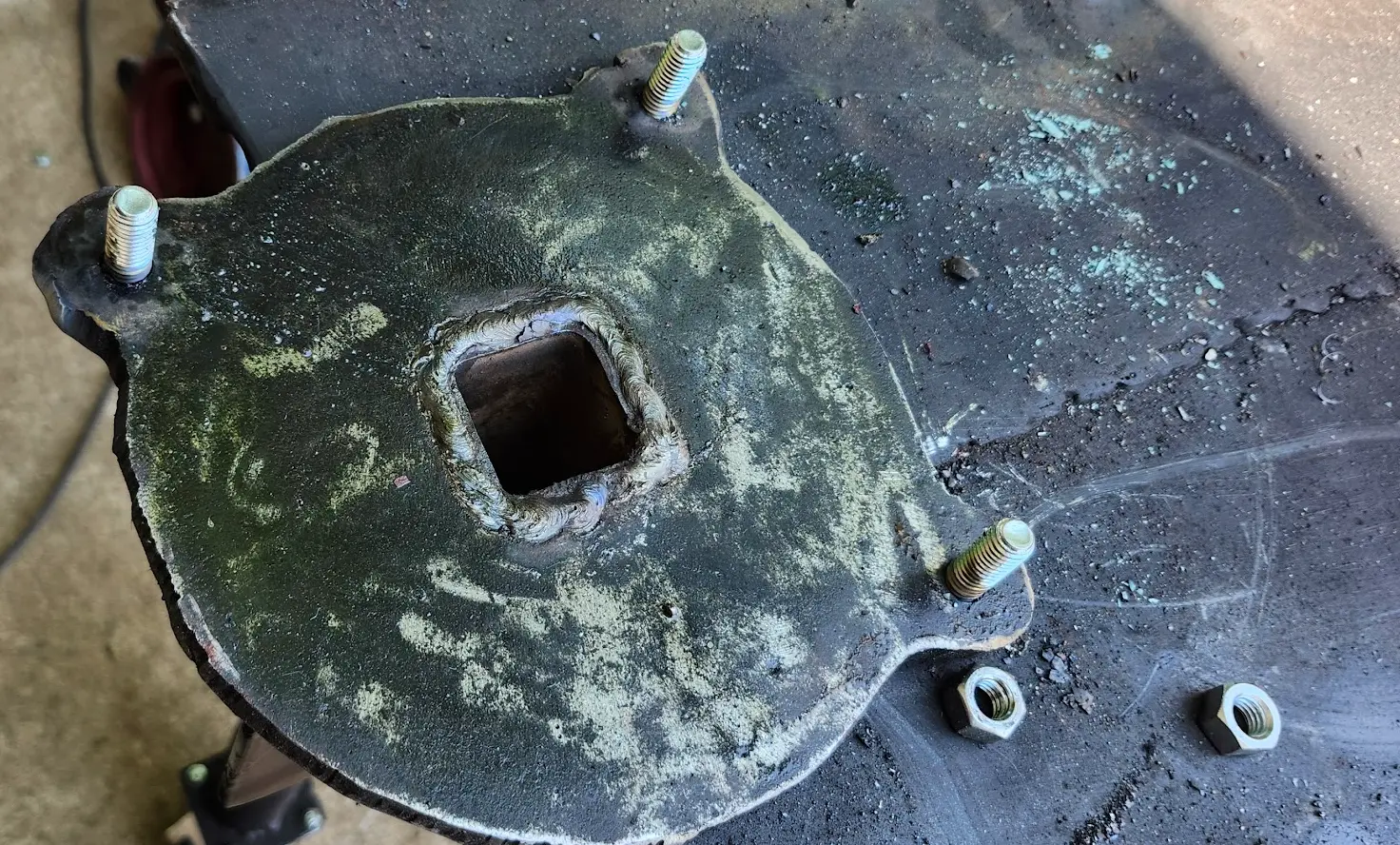 To, work around this, I decided to weld studs into the plate to ensure there would not be interference.