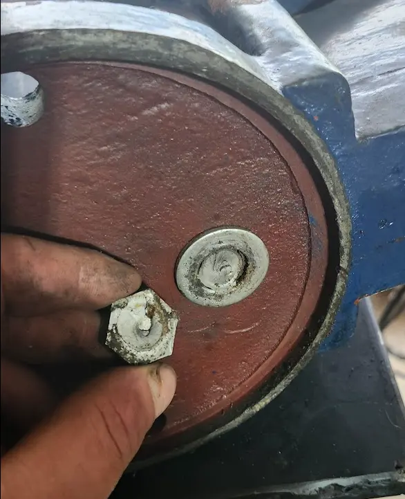 I then, cut the head off of the bolts, leaving just a threaded insert. I used a 3 1/2" cutting disk with my pneumatic cutoff tool.