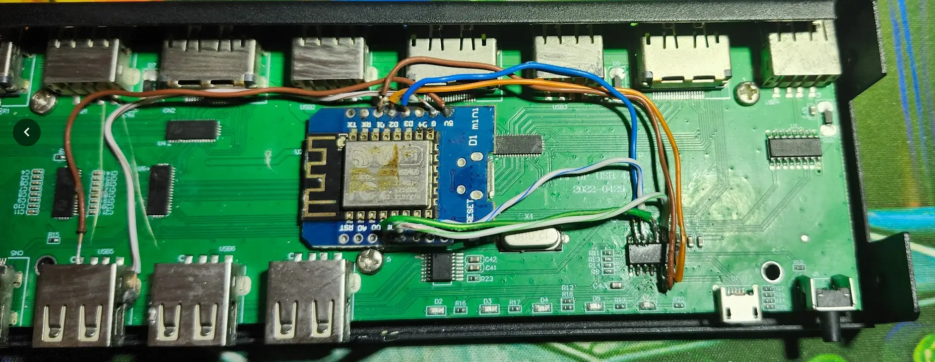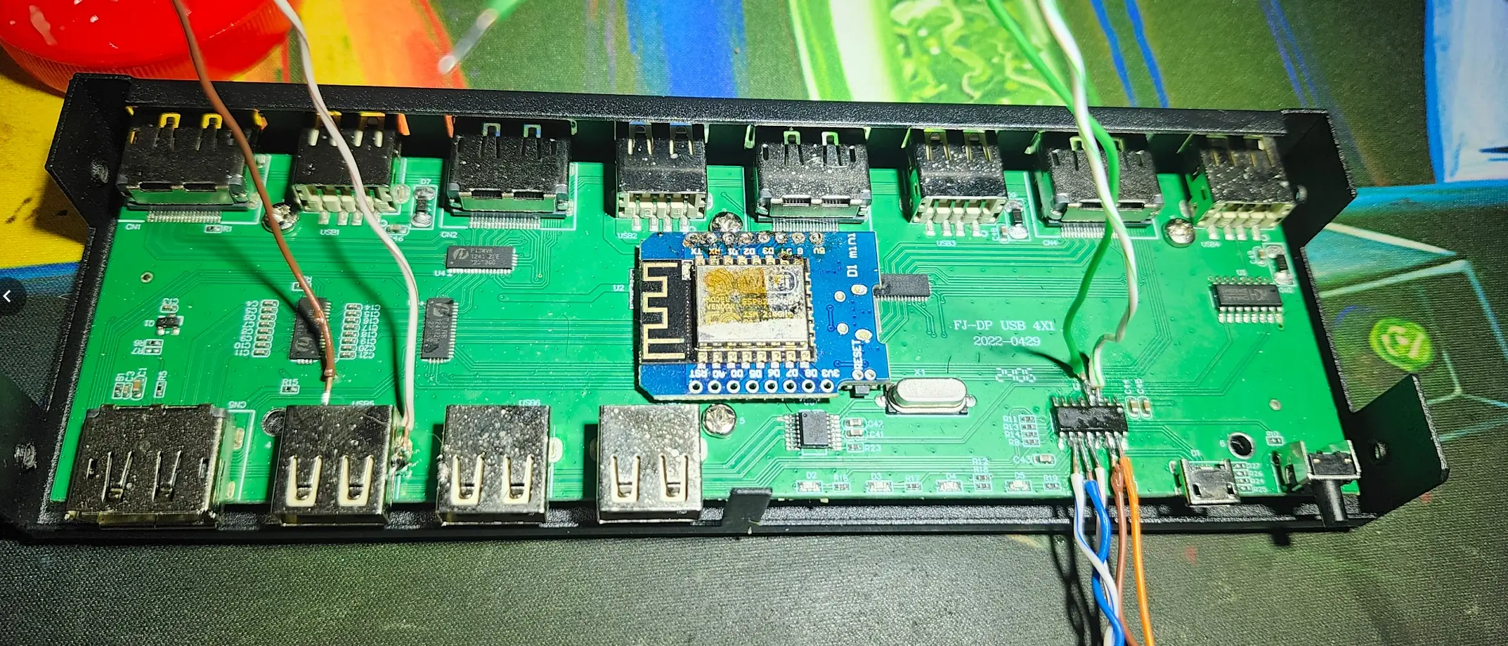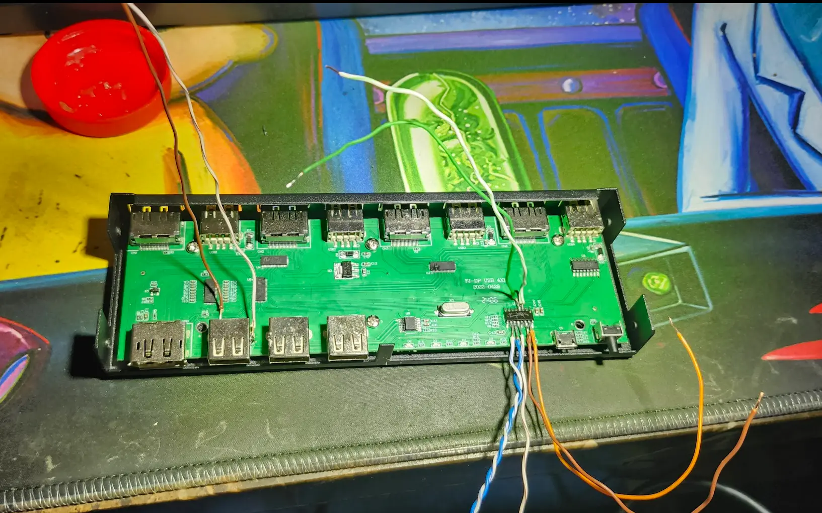 For 5v, I soldered onto the 5V pin of USB Port 1. (5v is shared across all of the ports).