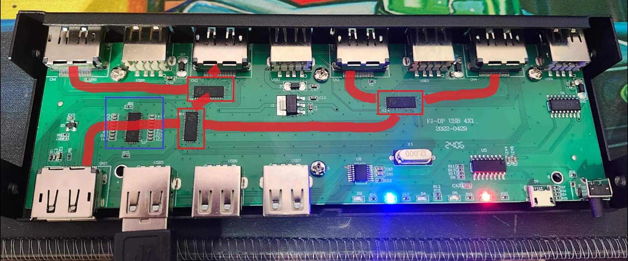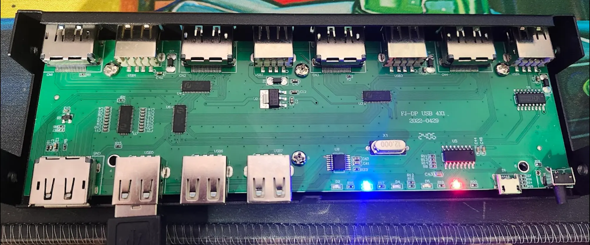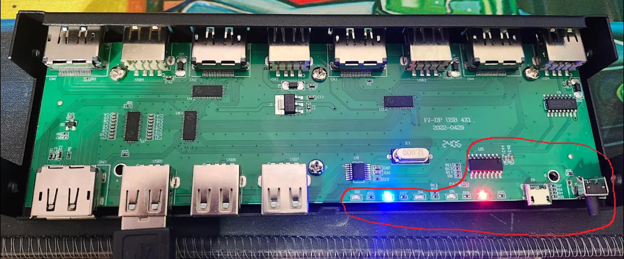 For 5v, I soldered onto the 5V pin of USB Port 1. (5v is shared across all of the ports).
