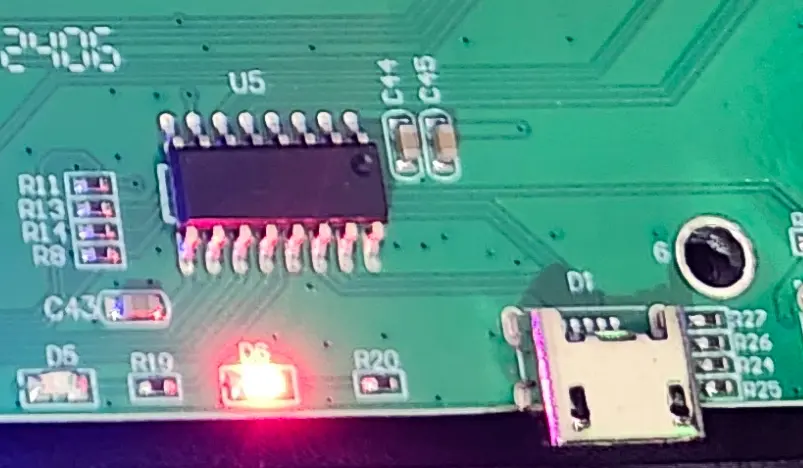 Knowing there is no actual USB connection- follow the pines from the "USB" port, to the IC. Use your tester to double-check the connection is made when you press buttons 1-4 on the remote.