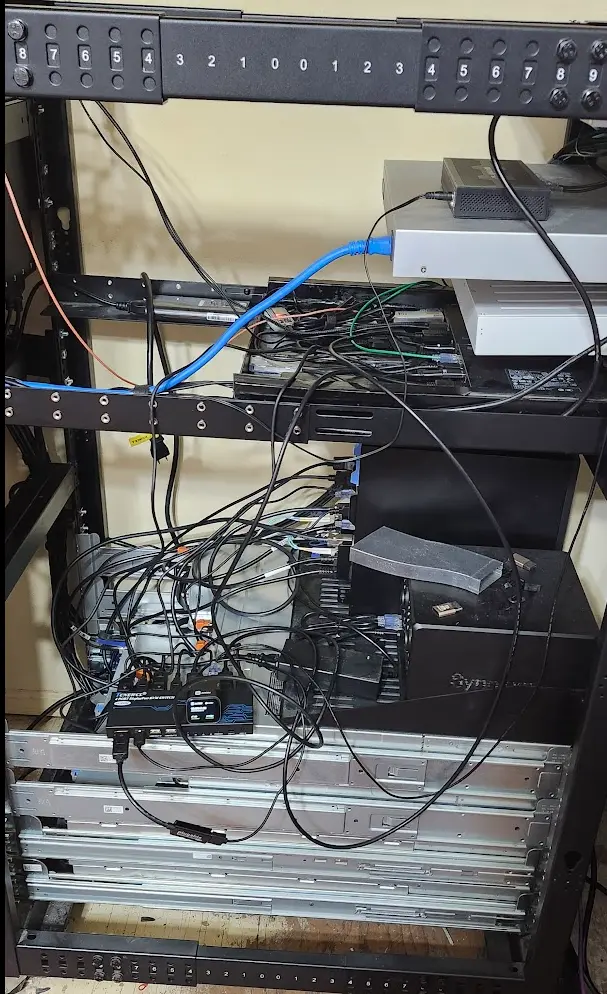 After sitting it in the rack and connecting all four pairs of DisplayPort / USB cables.... I had a mess of wires to cleanup and organize later.