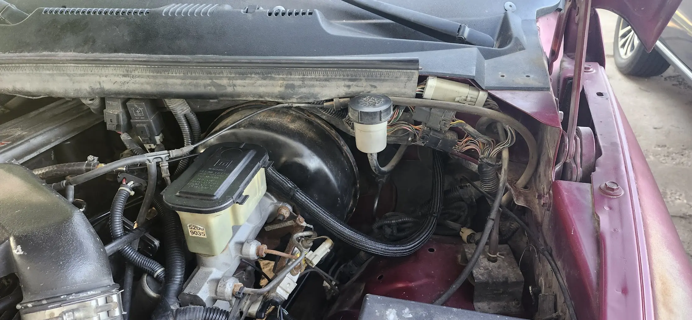 After you have the wires for the EGT, and Fuel Pressure Sensor, as well as the air-line for the boost gauge, you will need to run those into the cab. On the drivers side, to the right of the brake booster is a large grommet which can be used.