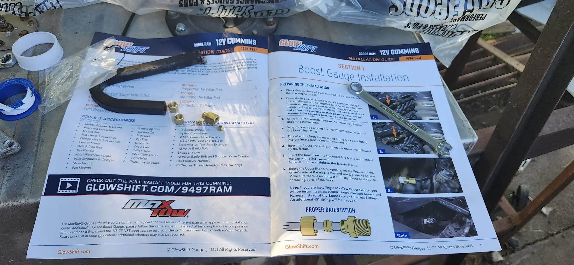 For gauges, I used a kit from GlowShift, specifically for a 1994-1997 Dodge Ram, with a Cummins.