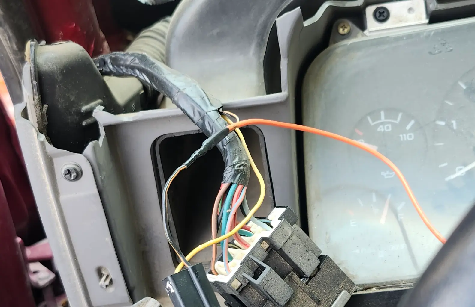 After, installing the gauges into the pod, you will have a lovely mess of wires. Carefully wrap these with zip-ties, and route towards the bottom.