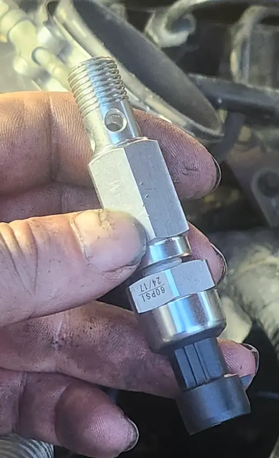 And, here is the new banjo bolt, included in the kit... with the fuel pressure sensor already installed.